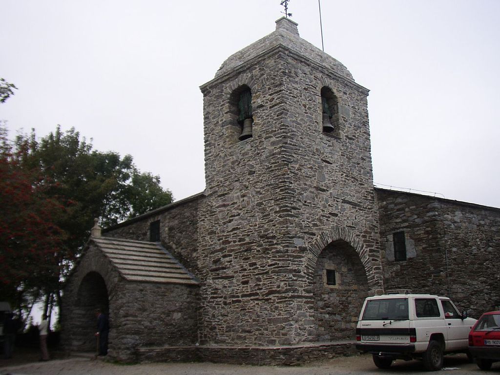 La iglesia está dedicada al apóstol y su fábrica es sencilla: una sola nave cubierta con bóveda de cañón y rematada en un ábside semicircular que sólo se abre en tres pequeños vanos. Esta sencillez contrasta enormemente con la calidad escultórica de sus portadas, especialmente de la Puerta del Perdón. Exactamente igual que la de la catedral de Compostela, esta puerta sólo abre los años jubileos para que los peregrinos enfermos la crucen. Eso sí, ¡es necesario haber recorrido 150 km como mínimo para conseguir las indulgencias!