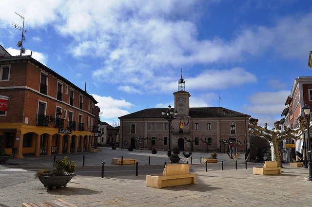 Volvemos a la calle Adolfo Suárez y giramos a la izquierda llegando, en menos de 100 metros, a la Plaza Mayor. Allí podremos ver el Ayuntamiento, edificado en 1868 tras el incendio del anterior. Es un edificio de gran solidez, con un zócalo de piedra procedente de abadías y conventos desaparecidos.