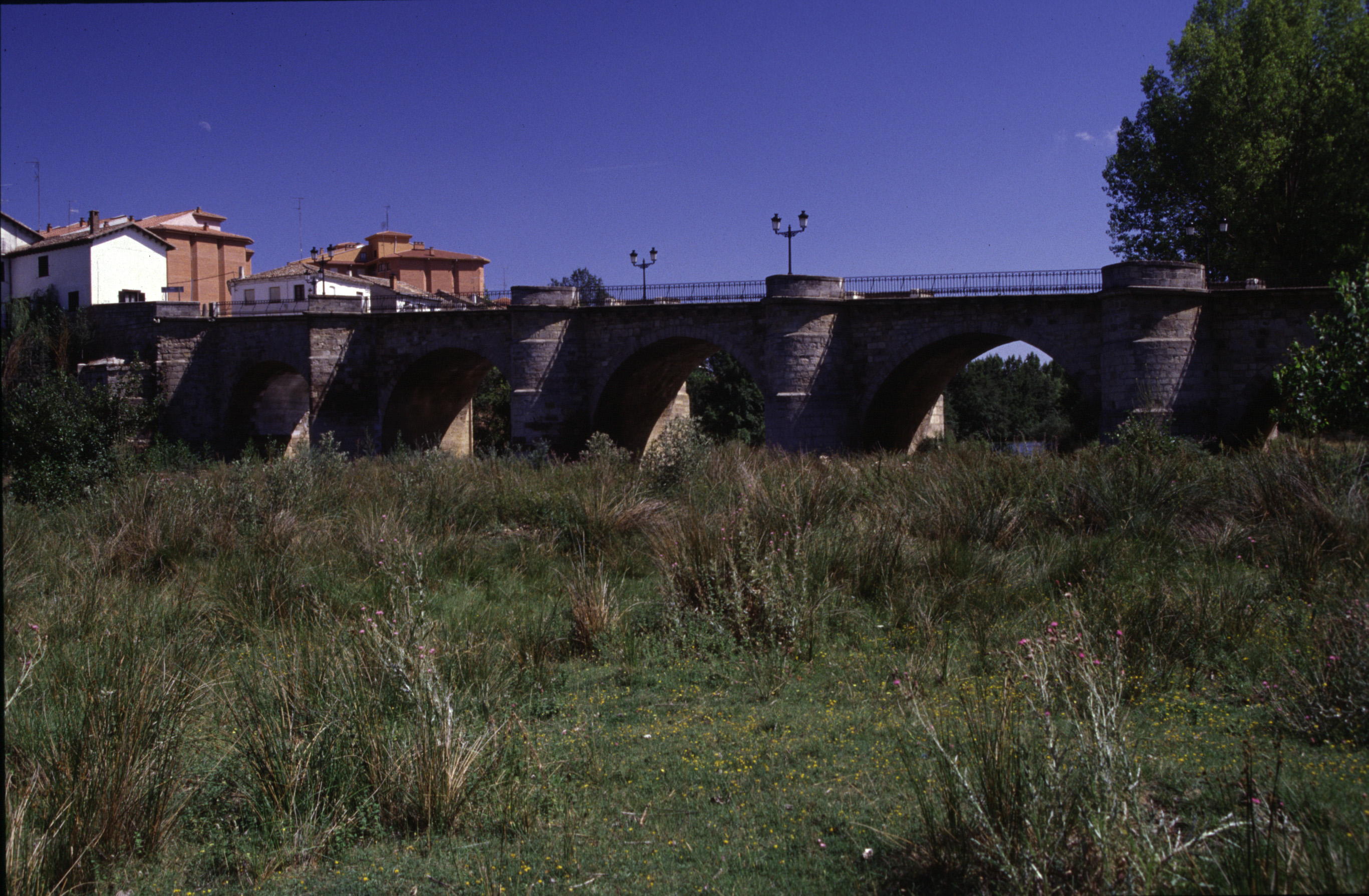 Saliendo de la iglesia seguimos toda la calle Hortaleza hasta el Puente Mayor. Este puente es una reconstrucción del S. XVI. El primer puente allí fue el del S. XI, que se hizo para unir el monasterio de San Zoilo con la villa de Carrión -aunque en ese momento ambos territorios funcionaban de manera independiente-. El primitivo puente tenía puertas a los extremos y en ellas se cobraba por pasar, tanto a los mercaderes como a los peregrinos. Por ello, algunas personas dejaban en su testamento dinero para pagar ese peaje a un número determinado de pobres o peregrinos, como obra de caridad.