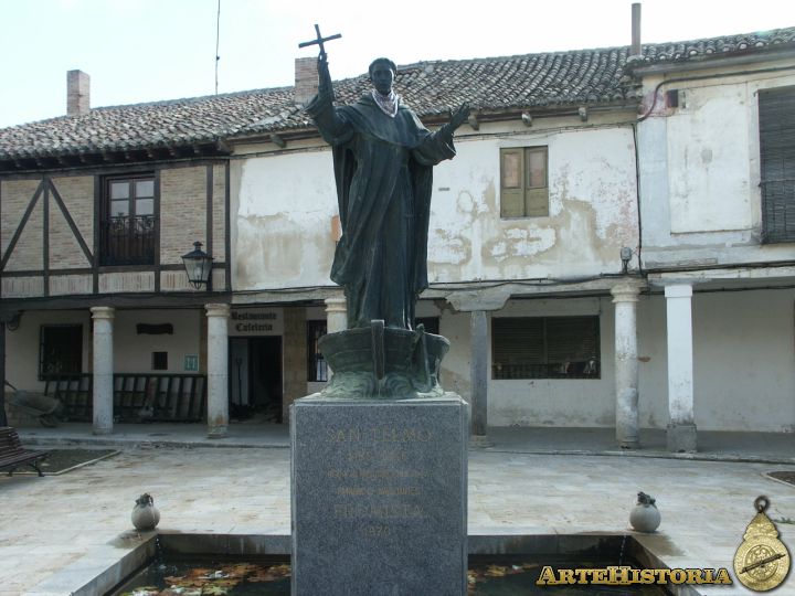 En la misma gran avenida del pueblo, se encuentra la escultura del patrón de Frómista: San Telmo. Este santo nació aquí en el S. XII y recorrió Asturias y Galicia predicando, especialmente con pescadores -por eso en esta escultura en plena meseta castellana se le representa en un barco-.