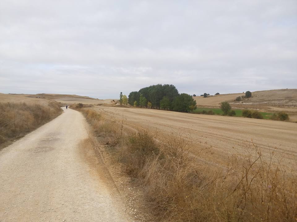 En esta etapa cruzaremos por completo el campo burgalés para entrar en Palencia, parte de la denominada “Tierra de Campos”. Nuestro cuerpo y mente habrán de acostumbrarse a circular entre un paisaje mucho más homogéneo que el precedente en el que el relieve, profundamente nivelado, se romperá por colinas que se alzarán como estatuas en el horizonte y que a veces tocará atravesar.