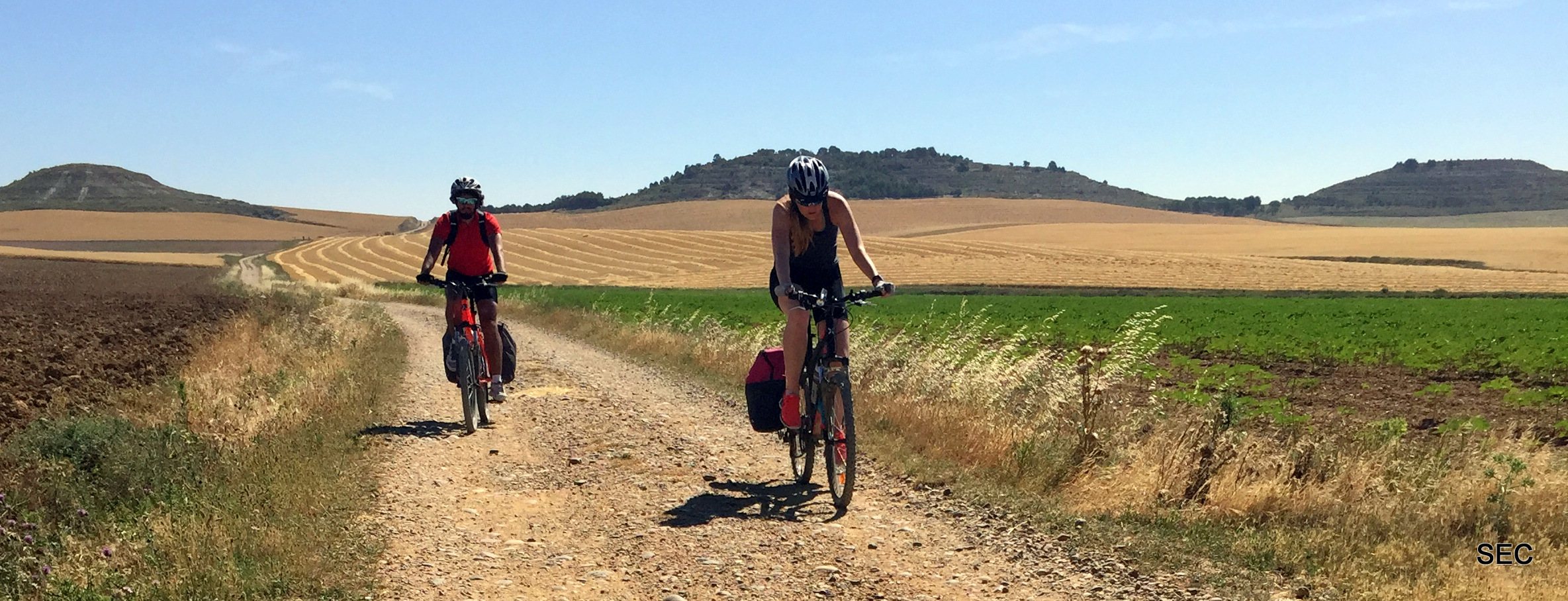 - Evitar en verano pedalear en las horas centrales del día ya que hay kilómetros en los que no hay una sombra donde guarecerse del sol. Siempre llevar gafas, gorra y crema solar.