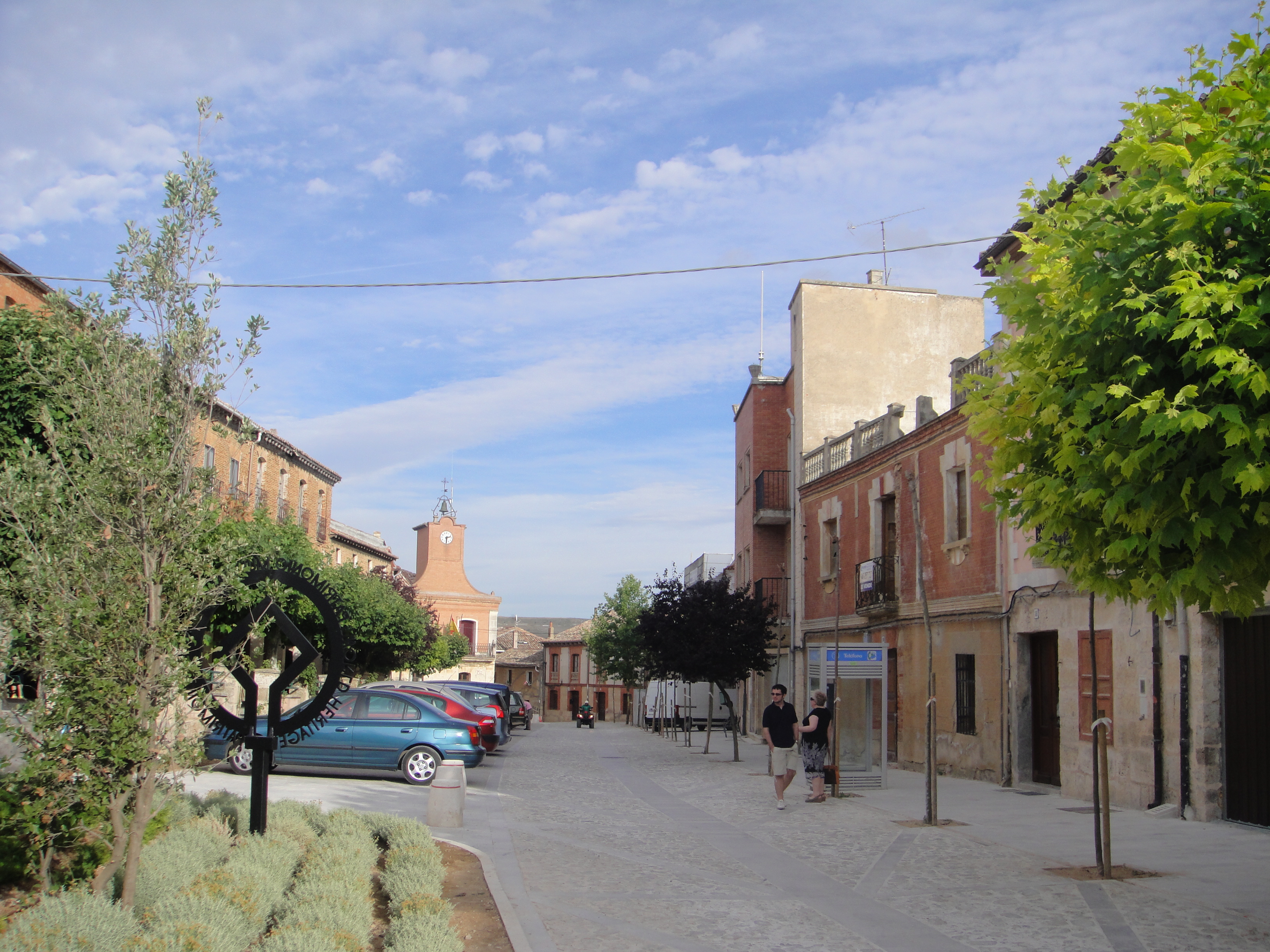 Después de esta visita seguimos por la carretera hacia Castrojeriz, que veremos a lo lejos ocupando la parte baja de la ladera de un cerro, en cuya cima hay un antiguo castillo. Este es un buen lugar para parar: está casi en el medio de la etapa (41 km), tiene todos los servicios y es uno de los lugares más bonitos que visitaremos hoy.