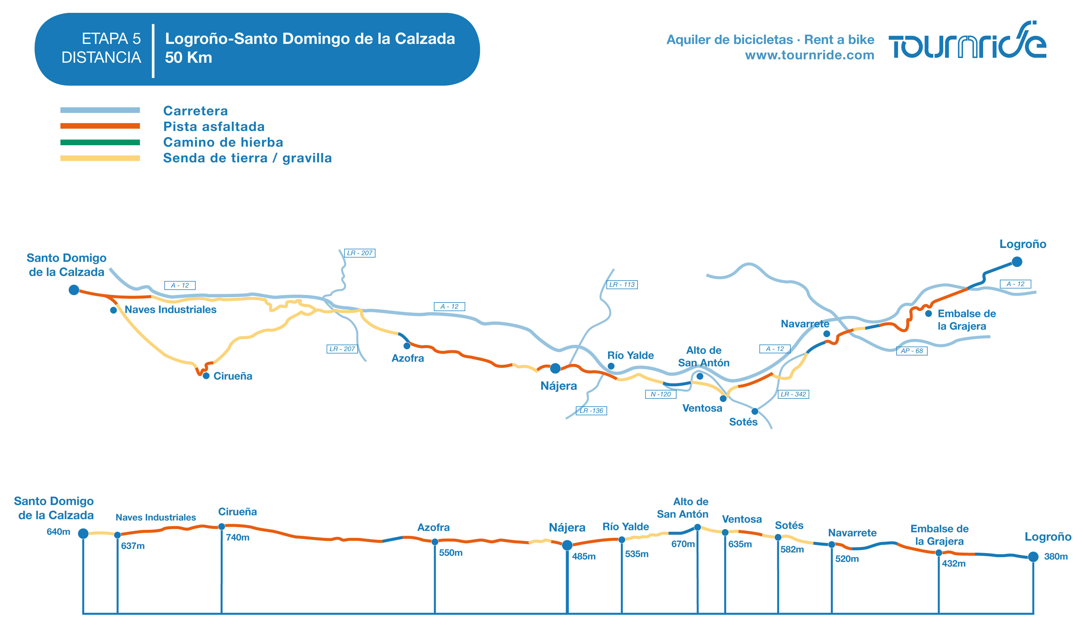 - Se iniziate da Logroño, Tournride vi aiuta ad arrivarci. Logroño è una città con buoni collegamenti, con aeroporto, stazione dei treni e autobus.