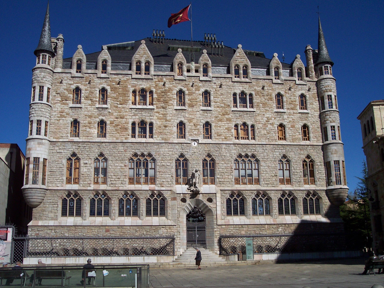 In the actuality, the Casa Botines is the Caja España (a savings bank) headquarters. In 1996 this organization restored the whole building trying to eliminate the remodeling made after Gaudi’s death. Today, we can only have access to de bank office area. The visit is for free and the schedule is from 8:30 to 14:00.