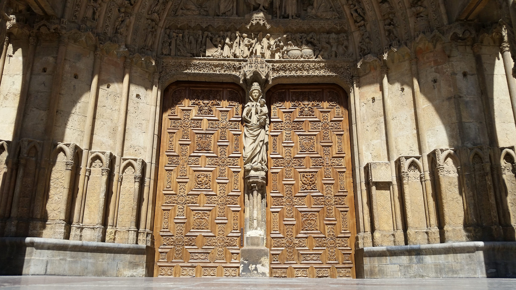 To the left, there is la Puerta de San Juan, with scenes from Jesus’s birth and the first moments of his life. To the right, we have la Puerta de San Francisco, dedicated entirely to tell stories about the Virgin’s life (her death below, and her coronation above).