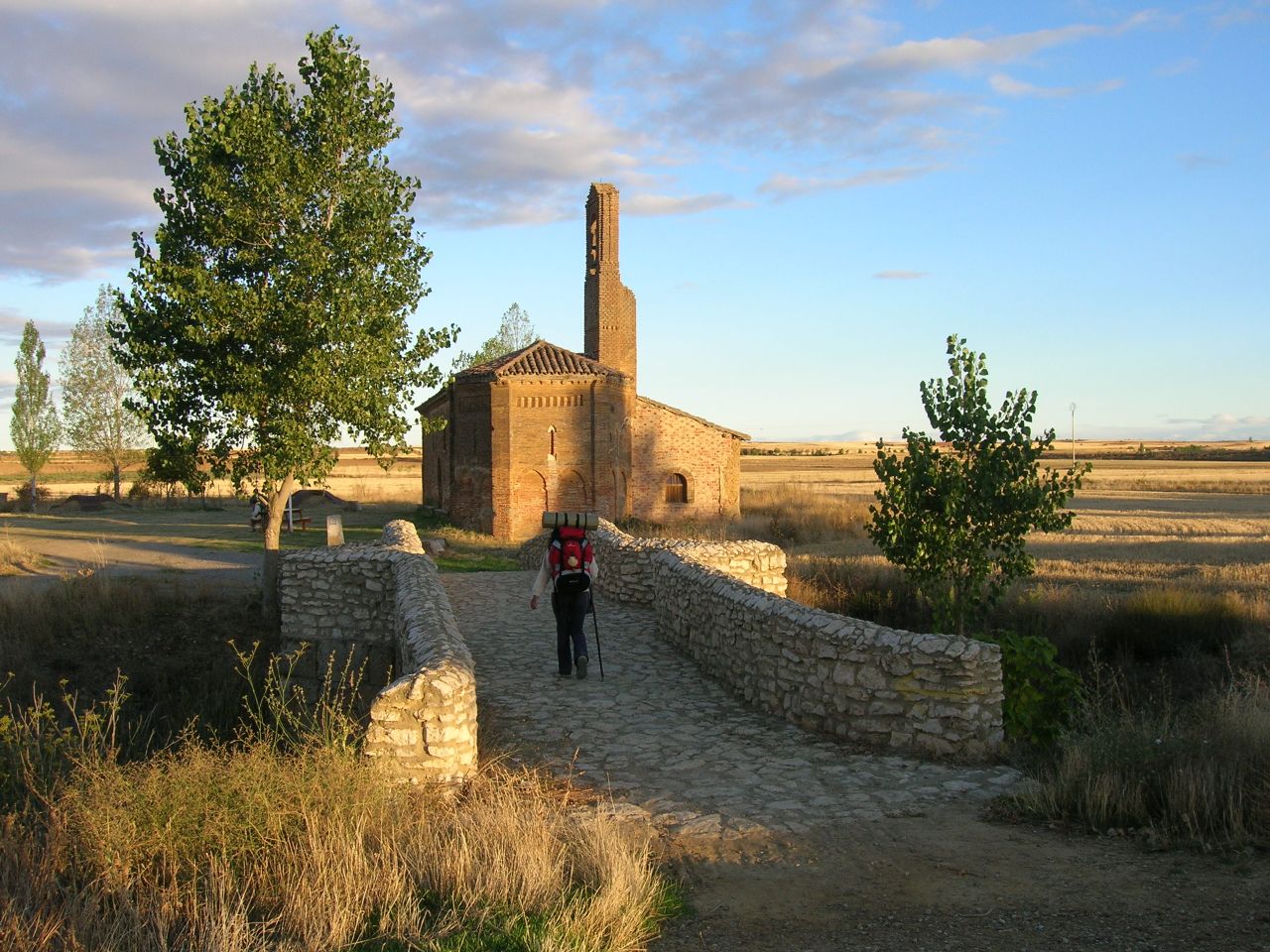 Before arriving to Sahagún we cross the N-120 to get to a path in the river Valderaduey meadow that leads to the chapel of “la Virgen del Puente” (only 3 Km away from Sahagún). The building, with a mudejar style provided services for years as a pilgrim hospital and today it is bordered with a nice grassland with seats, where we can also find sculptures that remind you of the glorious medieval past of Sahagún.